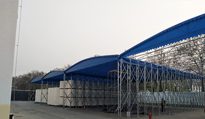 高效專業(yè)的推拉伸縮棚服務、規(guī)范化的伸縮棚管理,保證工周期短,工期交付準時。
